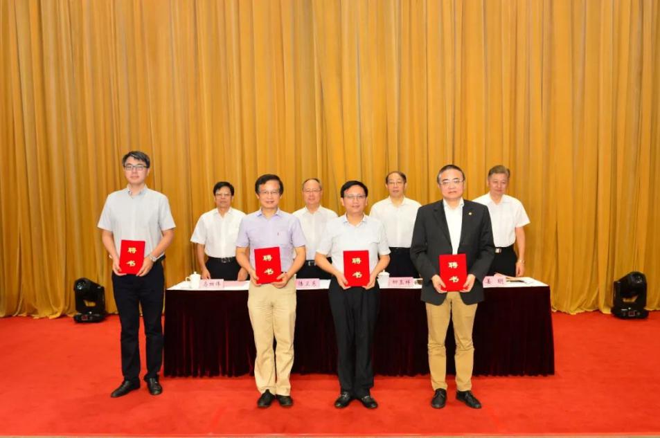 与会领导为贺小勇教授(左起第三位)等委员代表颁发聘书