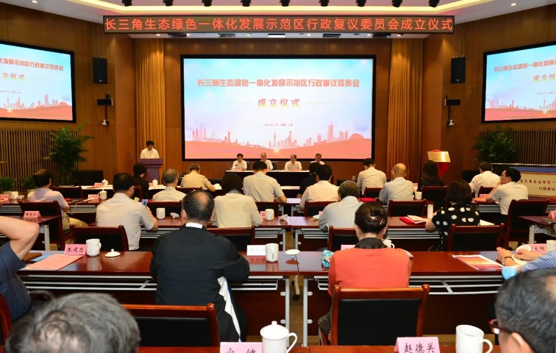 成立仪式上,上海市司法局党委书记、局长陆卫东,江苏省司法厅党委副书记、厅长柳玉祥,浙江省司法厅党委书记、厅长马柏伟,安徽省司法厅党委书记、厅长姜明代表四地司法厅(局)签署了包括《关于联合组建长三角生态绿色一体化发展示范区行政复议委员会的意见》在内的合作协议,为示范区复议委员会揭牌,并向郑少华教授、刘晓红教授、贺小勇教授等与会委员代表颁发聘书。