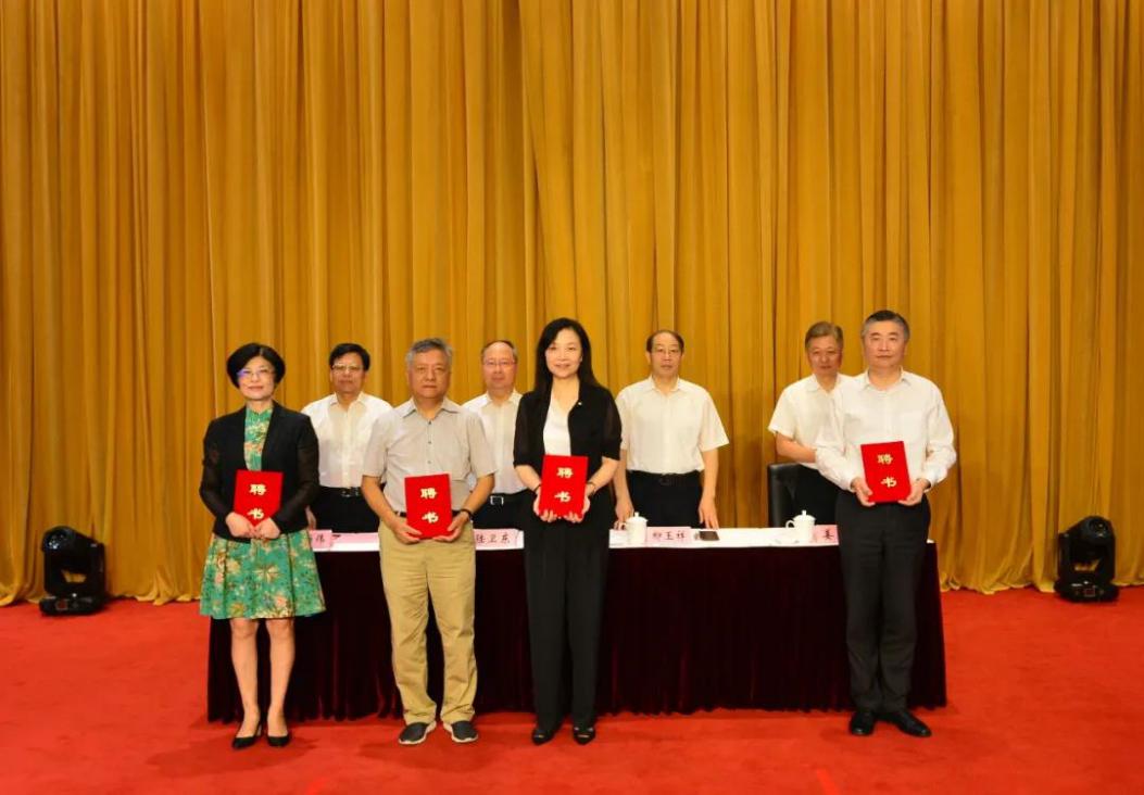 与会领导为刘晓红教授(左起第三位)等委员代表颁发聘书