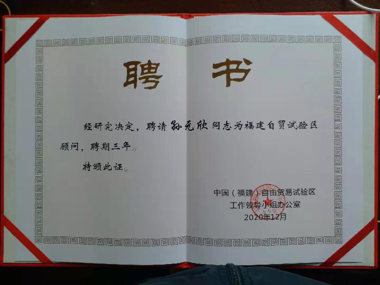 2020年12月,协同创新中心首席专家、上海财经大学自贸区研究院副院长孙元欣教授受聘为“中国(福建)自贸区顾问”,聘期为三年。孙元欣教授将对福建自贸区的政策研究、决策咨询、评估论证、课题研究等自贸区相关工作给予指导与建议,深入推进福建自贸试验区建设与发展。