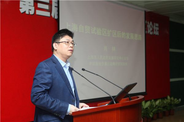 在谈到自贸试验区国家战略正在进一步深化推进时,肖林主任说,上海自贸试验区取得的优异成绩为其他区域的复制推广打下了扎实的基础,挂牌一年多来中国(上海)自由贸易试验区发挥了改革新高点,达到了国家试验的阶段性目标和试验任务。他表示,自贸区在全国范围内继续布点和在上海的不断扩容,是中央在新形势下应对国际环境新变化的重大举措,这也对包括上海在内的各个自贸试验区进一步突出先行先试,发挥好试验田功能提出更高的要求。在谈到自贸试验区扩围的国家战略意义及发展趋势时,他表示,这次全国三个自贸区可以与上海自贸区形成互补试验和对比试验,充分检验相关改革开放的复制结果和可行性,对上海自贸试验区进行综合性、总体性的探索。另外三个地方自贸试验区,可以依托地方特色进行自贸区的差异化探索,从而为更大规模的改革开放探路。四个试验区可以形成合力,对于利率市场化、汇率管制的放开、人民币资本项目的放开等金融领域重大突破性改革,扩容后的自贸试验区将拥有更大空间去承载,探索新路径,积累新经验。在谈到扩区后中国(上海)自由贸易试验区的发展思路时,肖林说,上海自贸区扩展有利于在较大空间里测试外商投资管理、服务业开放、试验监管等改革开放的项目,充分发挥浦东新区创新基础好、开放度高的优势。自贸区改革承担着为国家进行压力测试的任务,在更大范围内试验压力测试的结果可能更为准确,风险更为可控。针对上海自贸区扩区,肖林称将有三方面意义:一是开放的内容更加丰富,扩区后更多是为了功能上的测试,在更广的范围内对不同产业创新进行测试;第二,现有的产业比较单一,扩区后的产业门类较齐全,其他是金融开放有大文章可做;第三,扩区区域全部落实在浦东新区一个行政区域内,有利于在一个完整的行政体系里面更好的进行试验和改革,试验更具完整性。最后,肖林从探索建立与四个中心和科技创新中心联动机制、更高层次扩大服务业开放、加快推进投资贸易便利化和国际化、深化金融创新等四个方面给出了上海自贸区扩区后发展的建议。