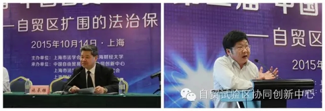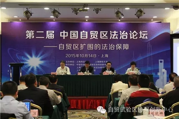2015年10月14日下午,由上海市法学会、上海财经大学主办,中国自由贸易试验区协同创新中心、上海市法学会自贸区法治研究会和上海财经大学法学院承办的第二届中国自贸区法治论坛在上海建国宾馆召开。