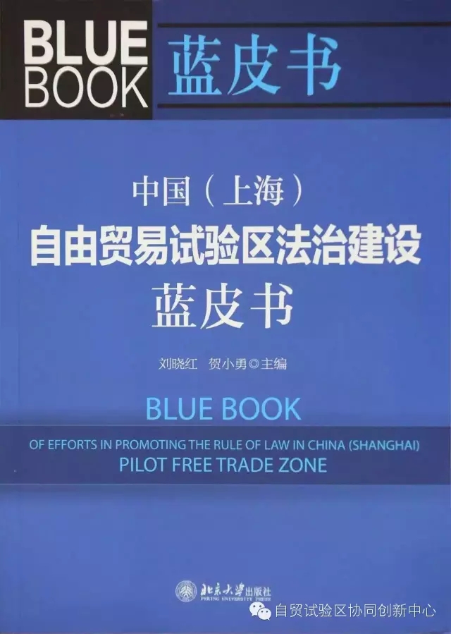 该蓝皮书于2016年1月由北大出版社出版,是国内第一本系统介绍中国(上海)自贸区法治建设经验和成果的专题书籍,也是华政自贸区法律研究院国家社科基金重大项目“法治引领推动自贸试验区建设的难点与路径研究”的阶段成果。