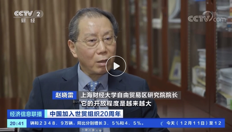 2021年12月8日,协同创新中心首席专家、上海财经大学自由贸易区研究院院长赵晓雷教授接受中央电视台财经频道《经济信息联播》专访,谈中国加入WTO20年与自由贸易试验区建设。采访部分内容如下: