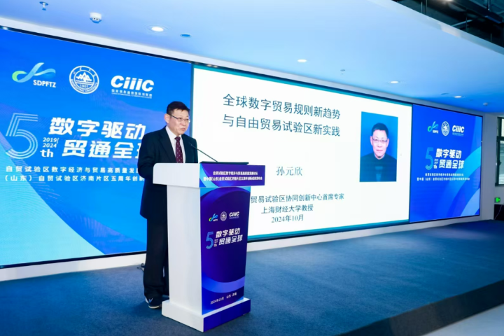 中心首席专家孙元欣应邀出席会议,并在学术论坛环节作“全球数字贸易新规则与自由贸易试验区新实践”主题发言。
