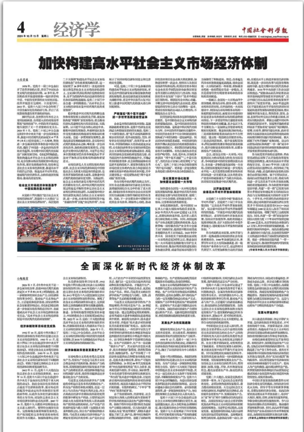10月15日,《中国社会科学报》、中国社科学网刊发协同创新中心首席专家赵晓雷署名文章《全面深化新时代经济体制改革》。该文章为《中国社会科学报》的特别约稿。