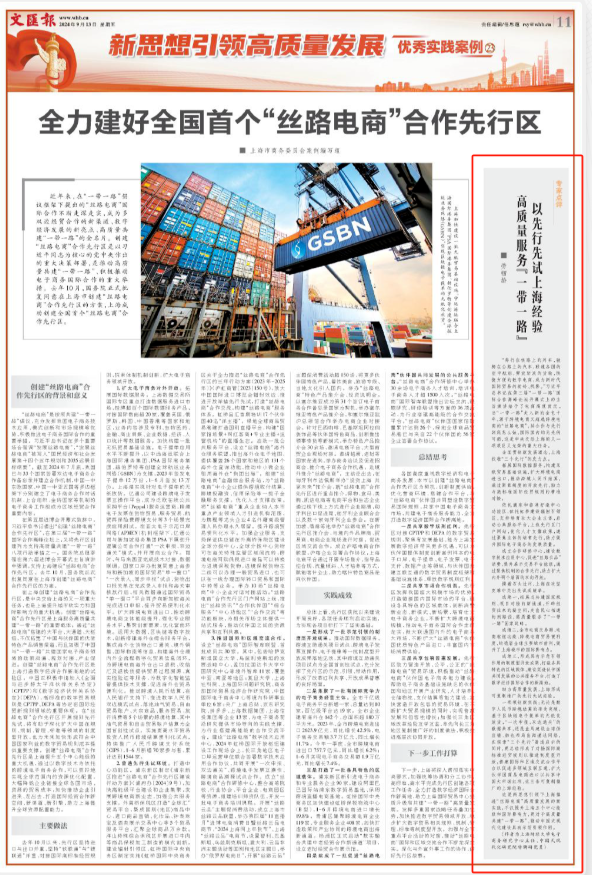 原文如下: “奔行在铁路上的列车,驰骋在公路上的汽车,联通各国的空中航班,劈波斩浪的货轮,快捷方便的数字电商,成为新时代国际贸易的驼铃、帆影。”习近平总书记在第三届“一带一路”国际合作高峰论坛开幕式上的主旨演讲给予了电商高度肯定。当“一带一路”走入新的金色十年,源于跨境电商又超越跨境电商的“丝路电商”,其合作与先行到底怎么做,国际国内均无先例可循,这是中央交给上海的又一项艰巨又光荣的重大任务。 ——原文刊载于《文汇报》2024/9/13第11版 |