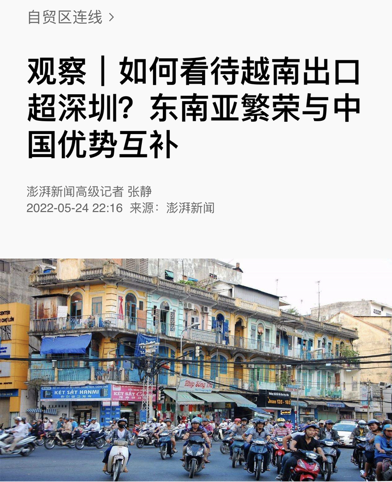 2022年5月24日,协同创新中心首席专家、上海财经大学孙元欣教授接受《澎湃新闻》采访,谈如何看待越南出口超深圳?采访具体内容如下: