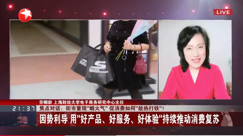 2022年6月1日,协同创新中心专家、上海财经大学劳帼龄副教授接受东方卫视《今晚》栏目的采访,谈街市重现“烟火气”,促消费如何“趁热打铁”?采访具体内容如下: