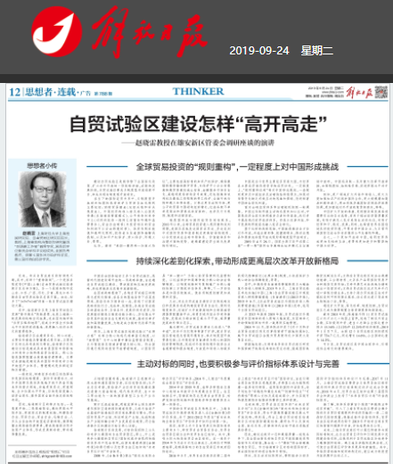 2019年9月,协同创新中心首席专家、上海财经大学自由贸易区研究院院长赵晓雷教授在雄安新区管委会调研座谈时的演讲被《学习强国》、《解放日报》和《上观新闻》纷纷刊载。赵晓雷教授认为,在新的发展阶段,自贸试验区要成为制度型开放创新平台,率先实现向制度型开放转变。以下是赵晓雷教授演讲的主要内容: