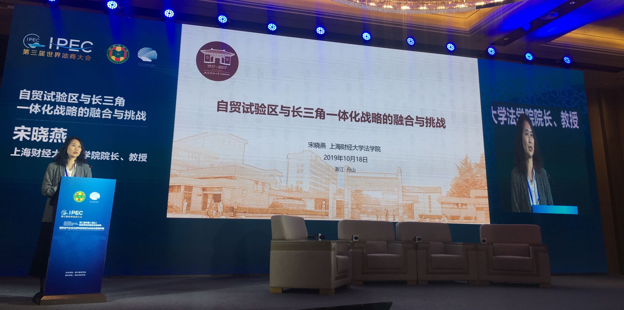 2019年10月18日,由浙江省法学会主办、舟山市法学会承办的“第二届中国(浙江)自由贸易试验区法治论坛暨第三届世界油商大会平行论坛”在舟山举行。中心首席专家、上海财经大学法学院院长宋晓燕教授受邀参加“第二届中国(浙江)自由贸易试验区法治论坛暨第三届世界油商大会”,并作了题为 《自贸试验区与长三角一体化战略的融合与挑战》的主题演讲,同时作为访谈嘉宾参与“打造法治化营商环境”的互动访谈。